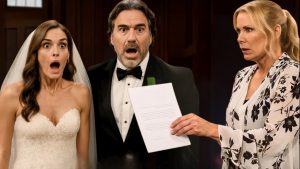 Enter Sheila Carter — arriving unannounced, allegedly to confront Steffy one last time. But when she hears the commotion, something inside her changes. Rather than exploiting Steffy’s danger, Sheila steps in to save her, overpowering the attacker and possibly taking a bullet in the process.